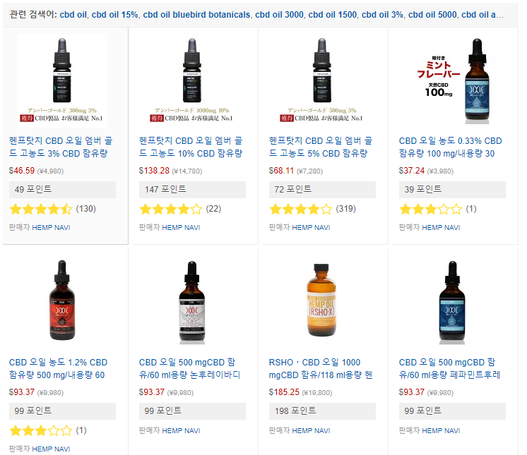 2. 일본 라쿠텐 제품은 5% 7.5% 있지만 아마 이보다 고농도의 CBD 오일을 복용했을 것으로 생각됩니다.