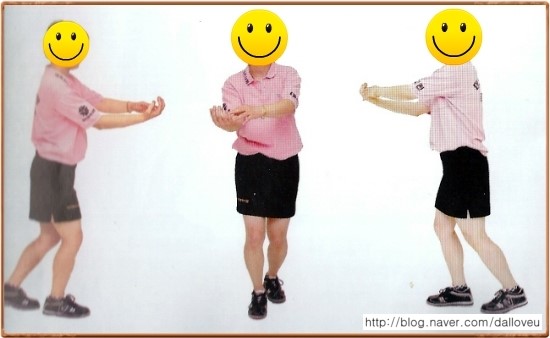 첫 스텝은 오른팔과 오른발이 하나로 움직여야 하는데 이것을 푸쉬어웨이라고 한다. 팔은 앞으로 살짝 밀어주며 아래로 내리고 오른발 위쪽의 위치로 가져가며 보폭은 왼발 앞 10cm에 오른발 뒷꿈치가 놓이게 한다.