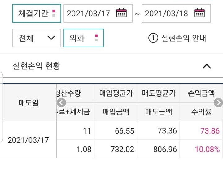 실제 투자한 돈은 2,000만원이라 불안불안했는데 실제 2번째로 수익이 실현되니 마음도 놓이고 한시름 덜었습니다. 저처럼 미련하게 하지 말고 투자금을 충분히 확보한 후 시작 하시면 큰 어려움없이 좋은 수익을 기대할 수 있을거예요.