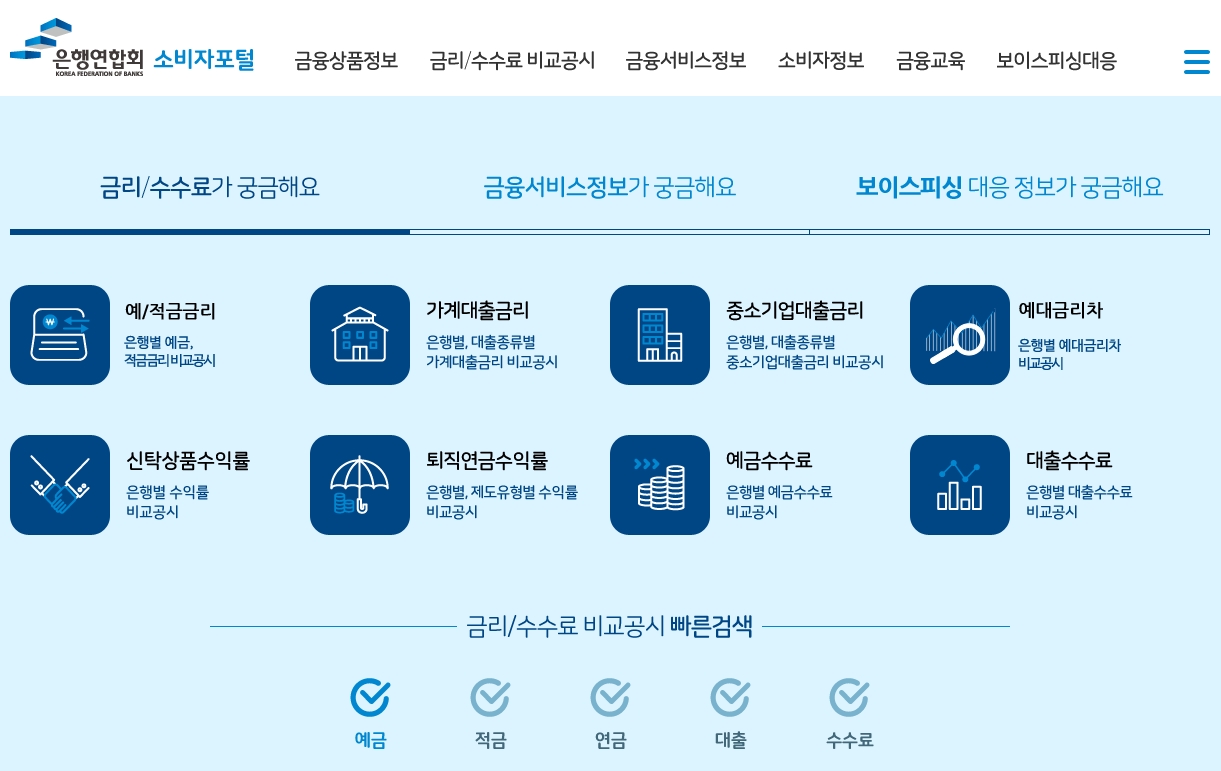 그렇지만 조금이라도 더 높은 적금 금리나 한도 조건을 보고 적금에 가입하려면 여러 은행을 비교해야 하는데 여간 쉽지 않은 일이다. 은행연합회에서는 고객들의 불편을 해소할 수 있도록 한번의 검색으로 여러 은행을 알아볼 수 있도록 지원을 하고 있다.