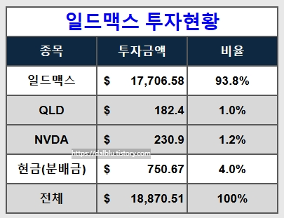 지금까지 수령한 배당금 재투자계획으로 QLD를 2주 샀고, NVDA 엔비디아에 2주를 샀습니다. QLD 와 NVDA를 놓고 고민을 했습니다. 처음에는 일드맥스 배당주에 재투자를 생각했는데 유튜버 <미국주식 럭키>님이 백테스트한 결과를 보니 배당주 재투자가 가장 낮은 수익을 보이는 것으로 나왔습니다.